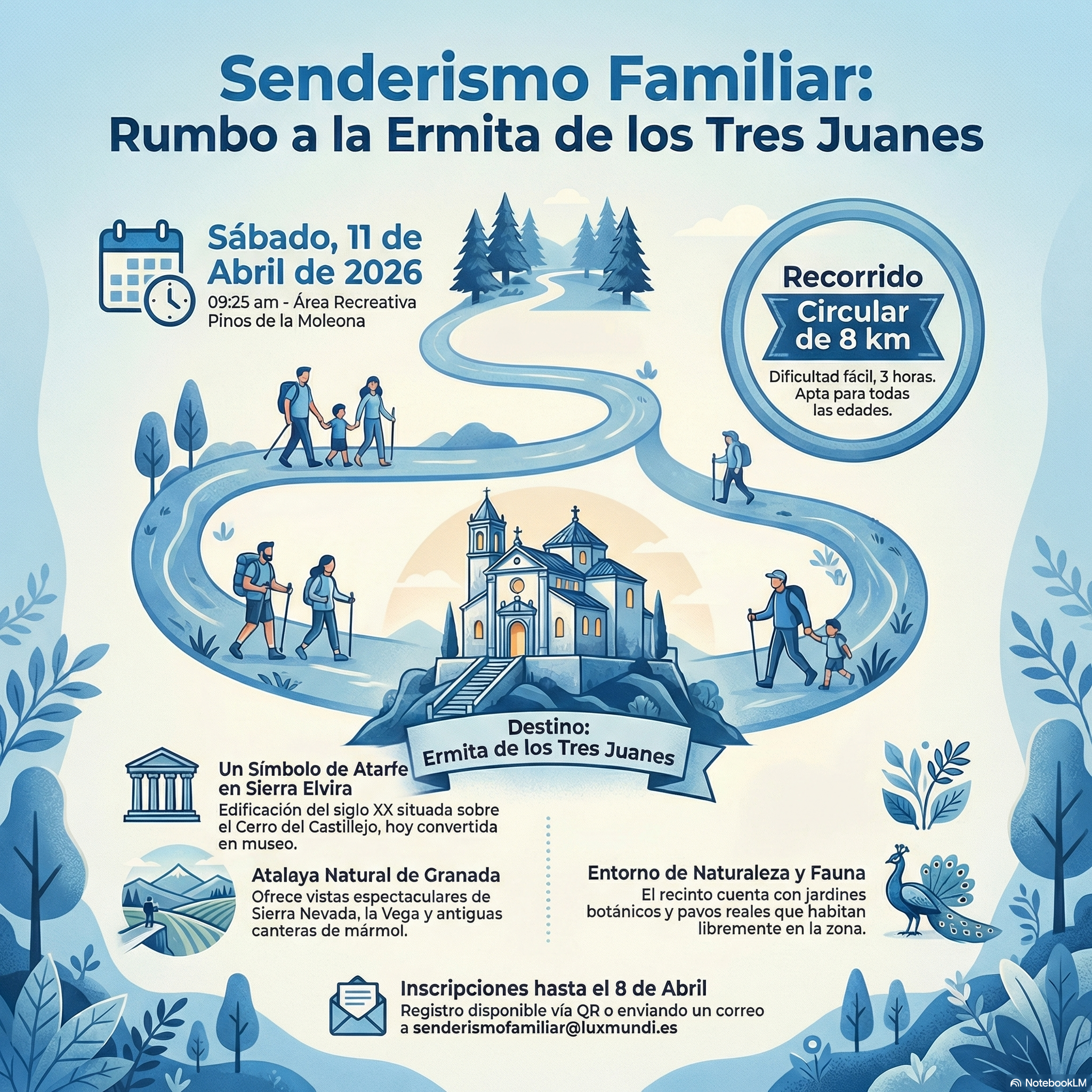 ¿Buscas plan para el próximo 11 de abril de 2026? Únete a nuestra ruta de Senderismo Familiar con destino a la mítica Ermita de los Tres Juanes📍 Punto de encuentro: Área recreativa Pinos de la Moleona, Atarfe