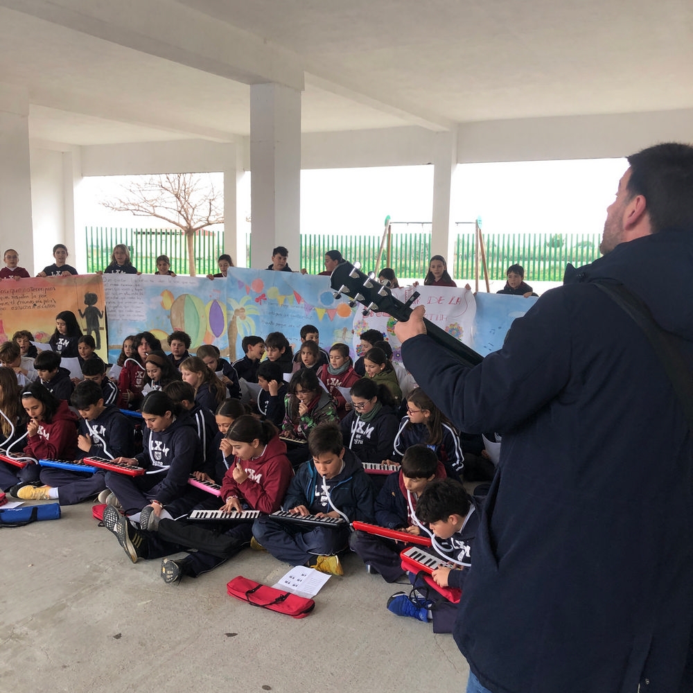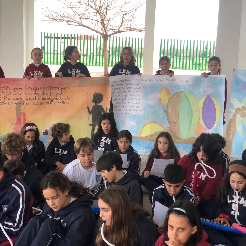 El momento más emocionante llegó cuando todos unimos nuestras voces para cantar «Que canten los niños» de José Luis Perales. 🎶👦👧 Escucharles pedir un mundo más justo nos recuerda por qué educar en valores es nuestra misión más importante.