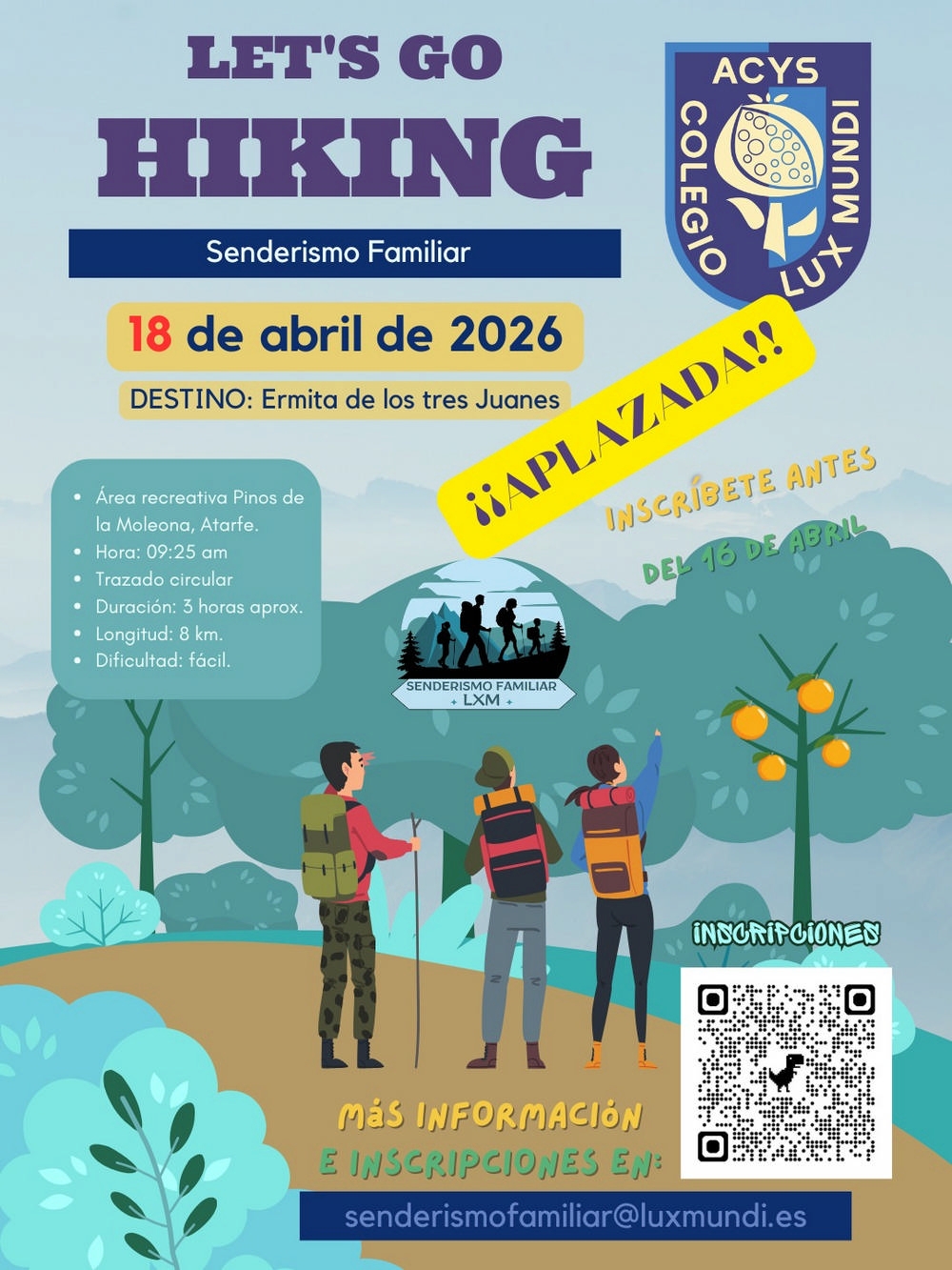 ¡Lo volvimos a hacer! El pasado fin de semana, nuestras familias senderistas del Colegio Lux Mundi se calzaron las botas para disfrutar de la segunda edición de nuestro Senderismo Familiar, esta vez con un destino de altura: la Ermita de los Tres Juanes.
