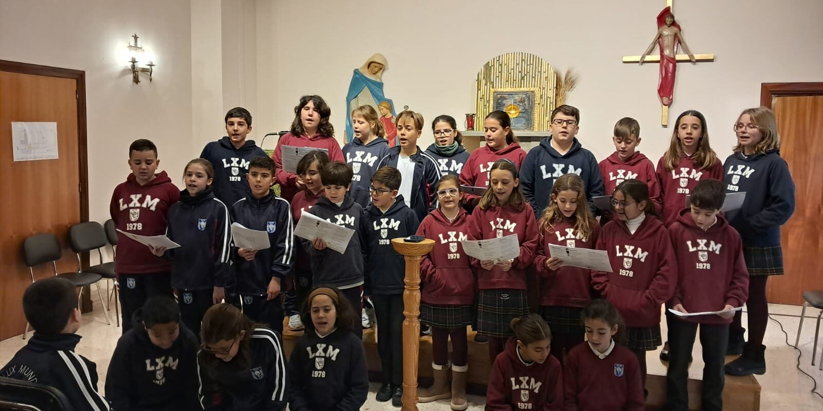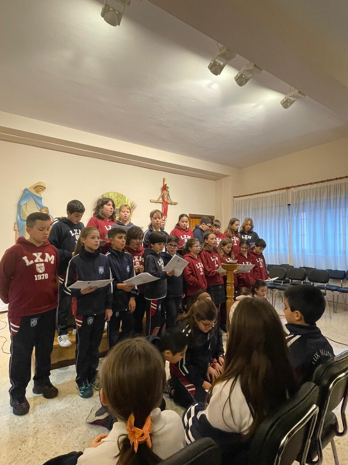 A través de la retransmisión para todo el colegio, sus voces llegaron a cada aula, recordándonos la importancia de ser sembradores de esperanza, perdón y alegría. 🌟✨