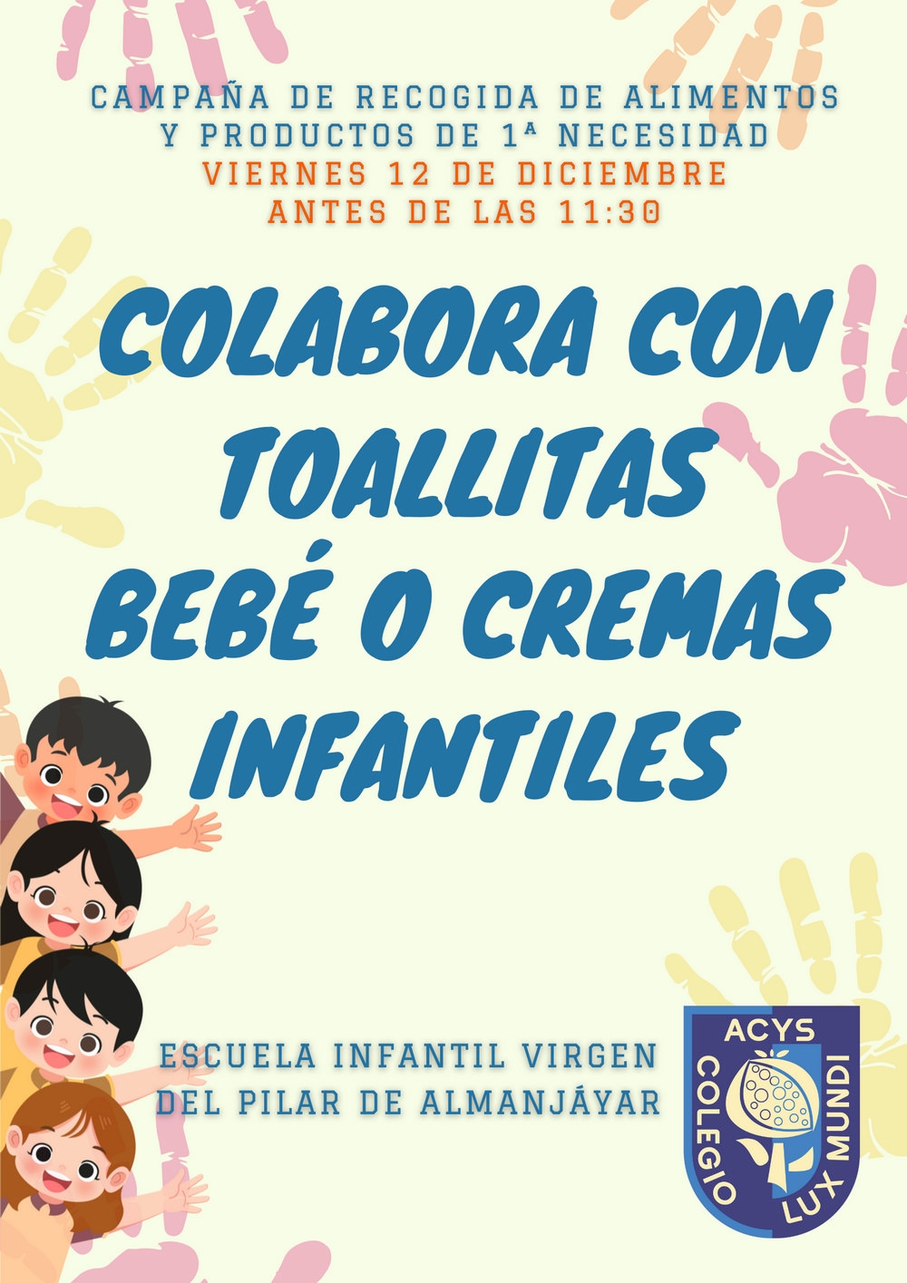 En el Colegio Lux Mundi, la educación va más allá de las aulas; buscamos formar corazones comprometidos y solidarios. Por ello, nos llena de orgullo compartir el éxito de nuestra reciente campaña de recogida de alimentos y productos de primera necesidad destinada al Centro Infantil Virgen del Pilar.